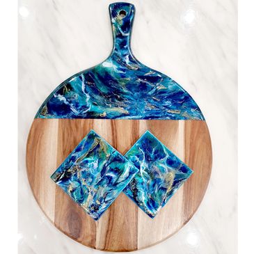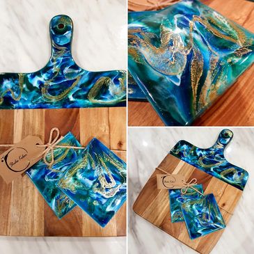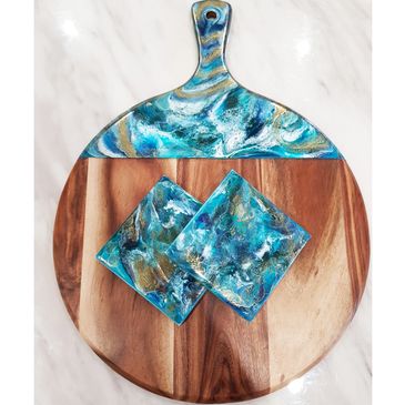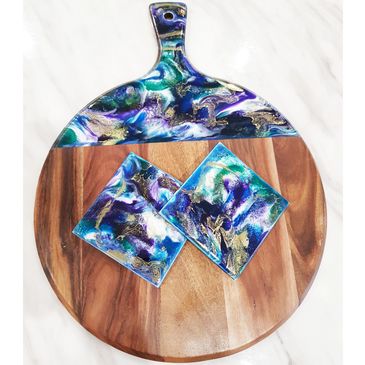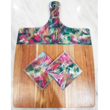 Cheeseboard with 2 matching coasters