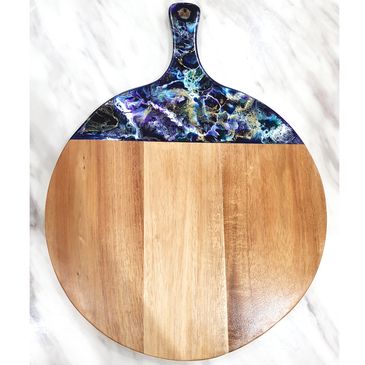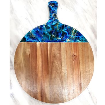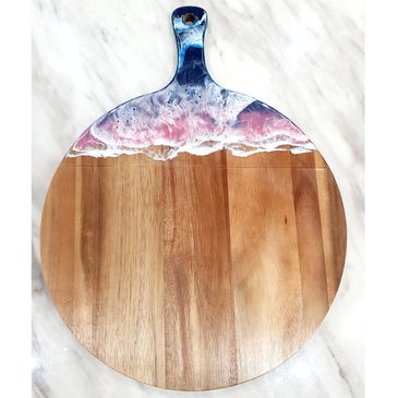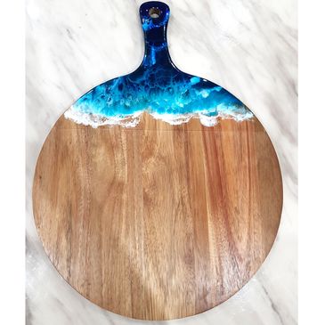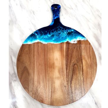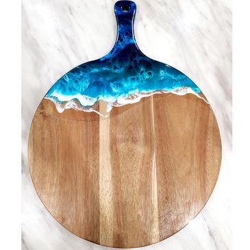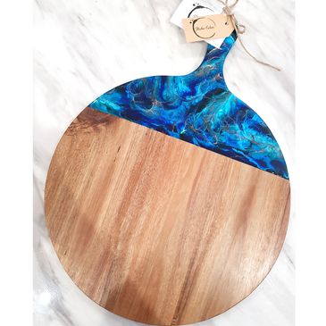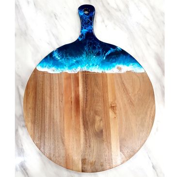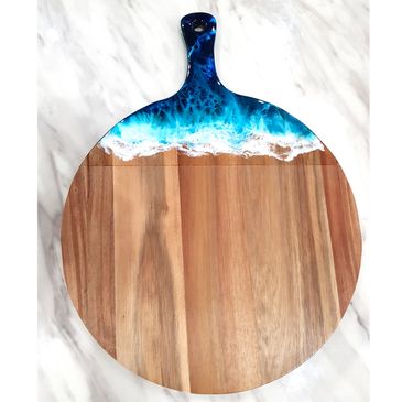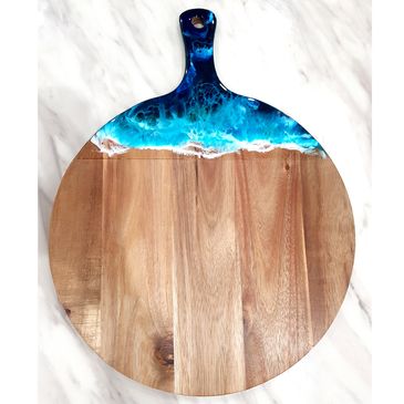 Acacia wood cheeseboard, with sea shells.